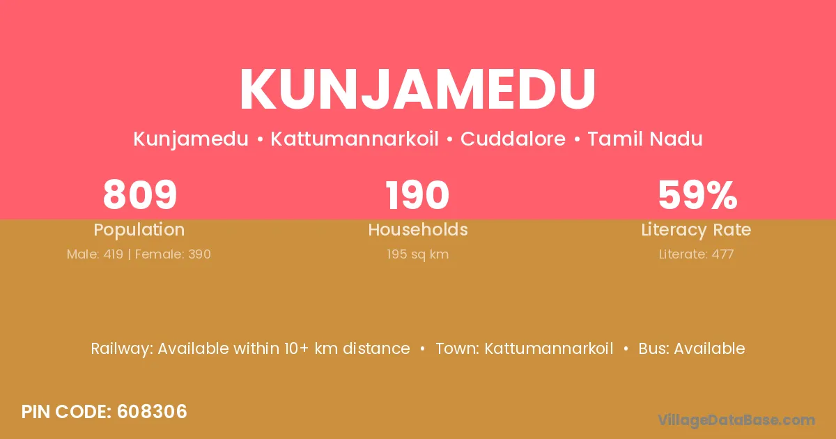 According to Census 2011 information, the village code of Kunjamedu village is 608306.