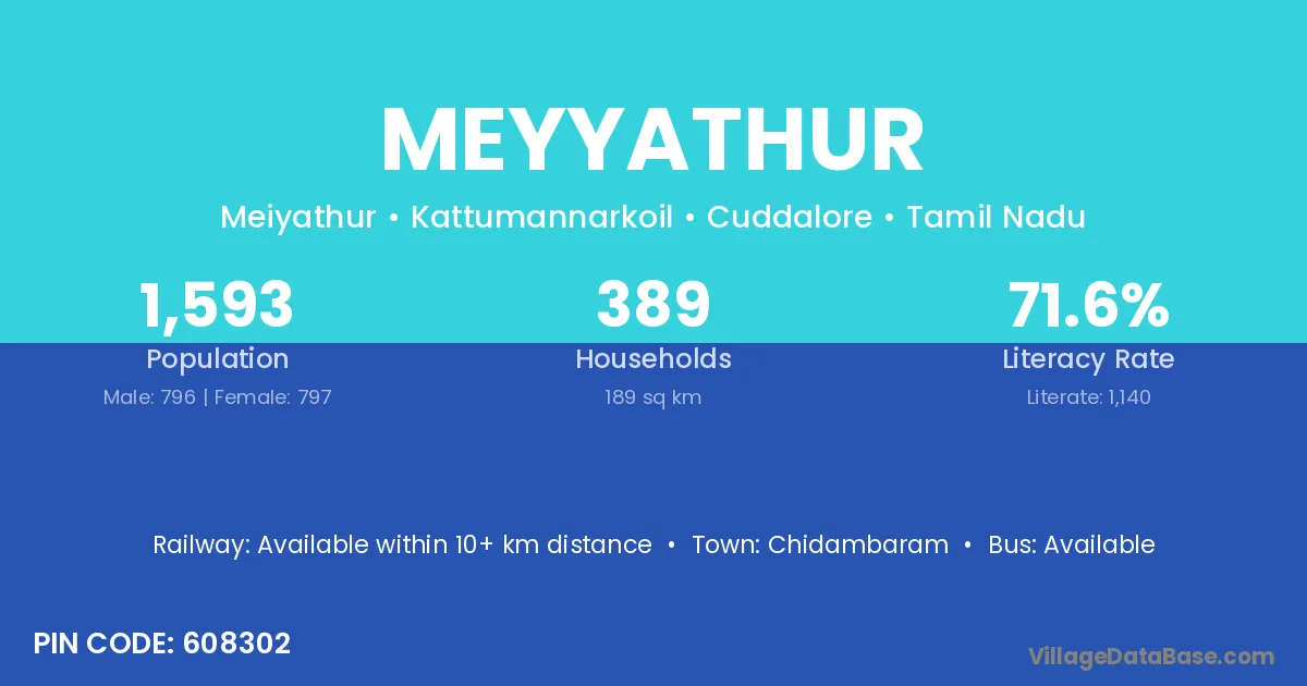 Chidambaram is the nearest town to Meyyathur village for major economic activities