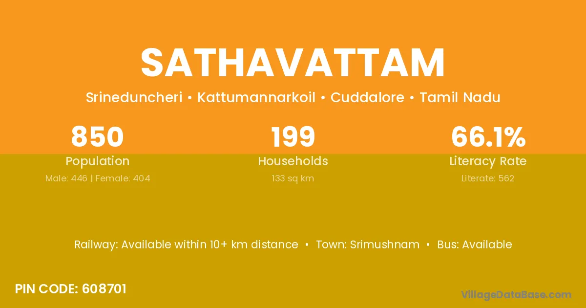 Srimushnam is the nearest town to Sathavattam village for major economic activities