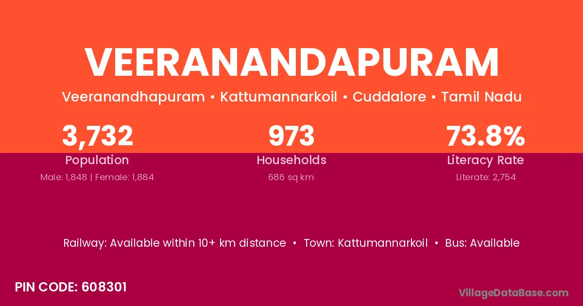 According to Census 2011 information, the village code of Veeranandapuram village is 608301.
