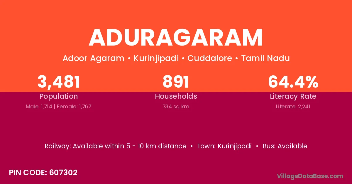 Kurinjipadi is the nearest town to Aduragaram village for major economic activities