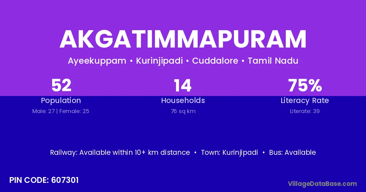 Kurinjipadi is the nearest town to Akgatimmapuram village for major economic activities