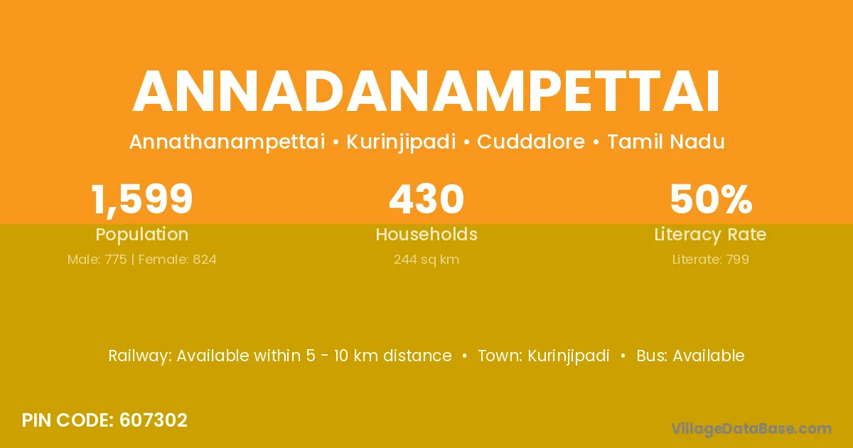 Annadanampettai village has a total population of 1,599 people, of which 775 are males and 824 are females.