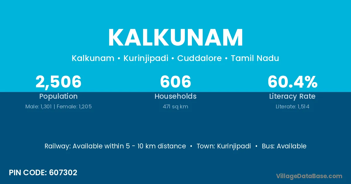 Kurinjipadi is the nearest town to Kalkunam village for major economic activities