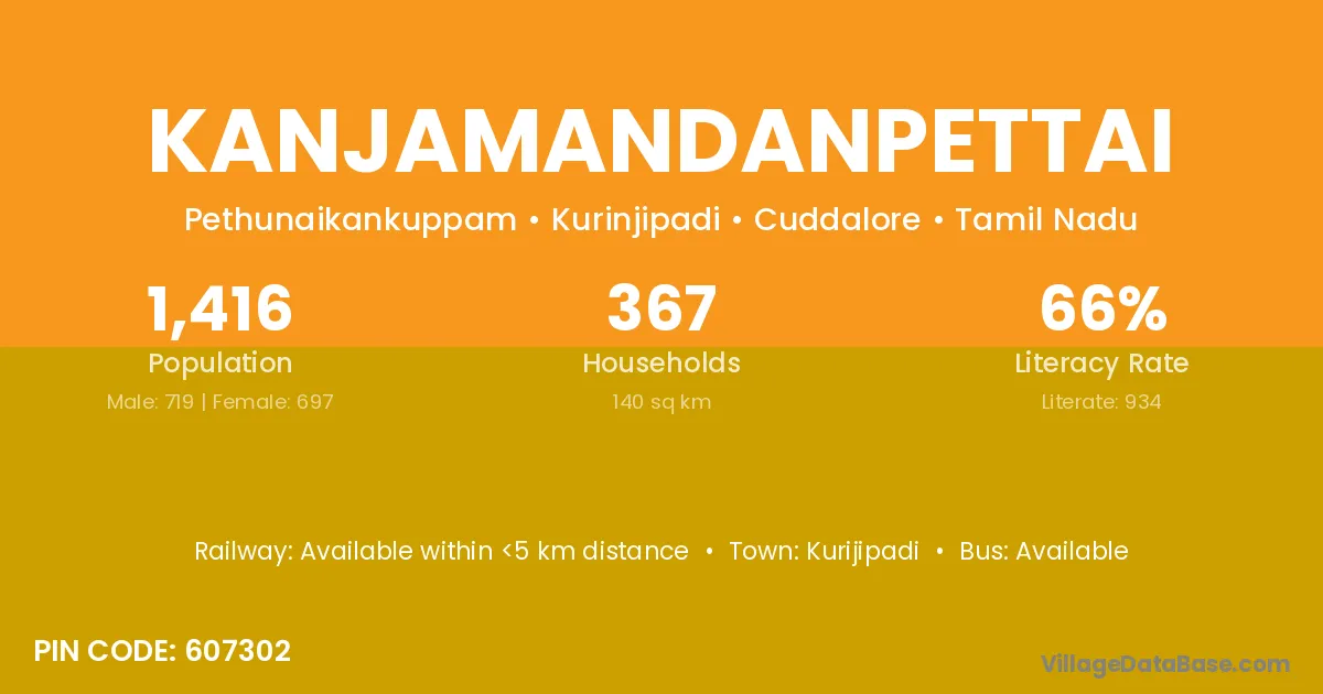 Kurijipadi is the nearest town to Kanjamandanpettai village for major economic activities