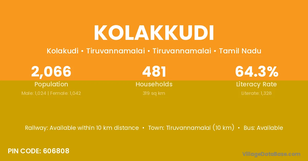 According to Census 2011 information, the village code of Kolakkudi village is 607802.