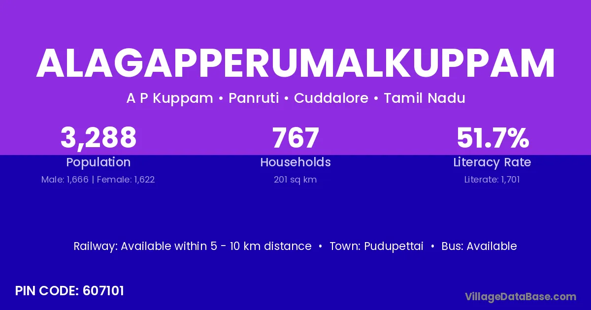 Pudupettai is the nearest town to Alagapperumalkuppam village for major economic activities