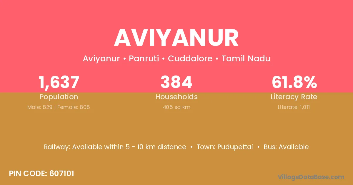 According to Census 2011 information, the village code of Aviyanur village is 607101.