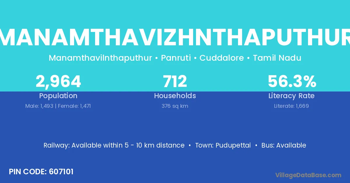 Pudupettai is the nearest town to Manamthavizhnthaputhur village for major economic activities