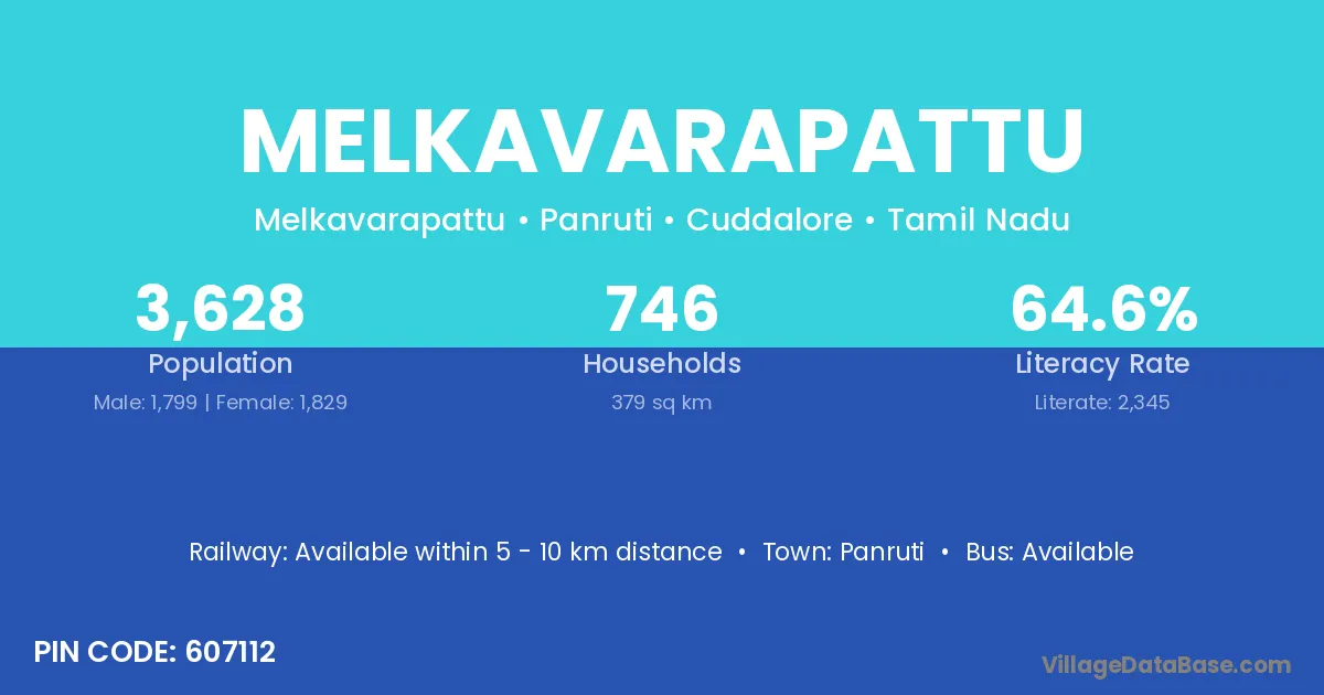 Panruti is the nearest town to Melkavarapattu village for major economic activities