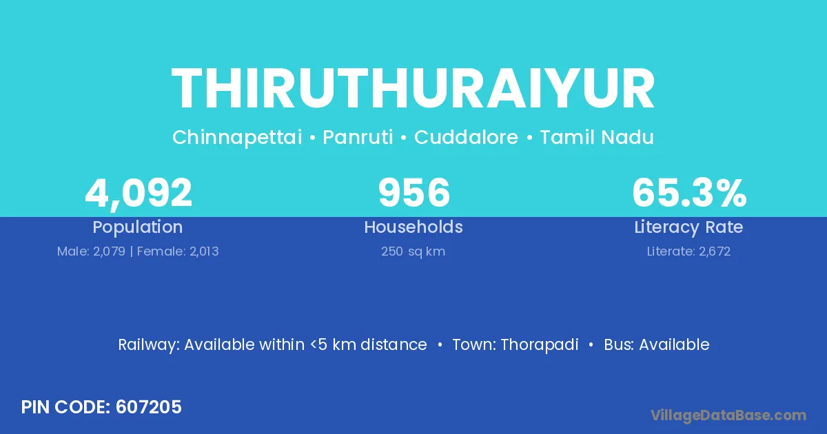 According to Census 2011 information, the village code of Thiruthuraiyur village is 607205.