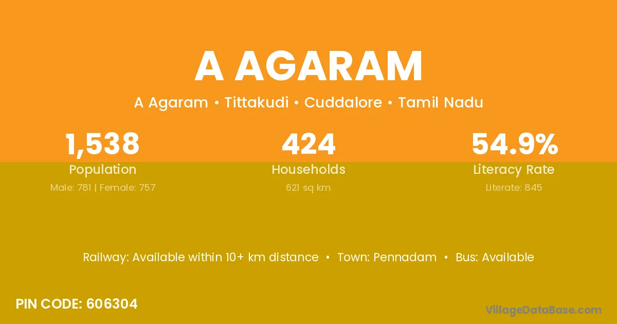 According to Census 2011 information, the village code of A Agaram village is 606304.