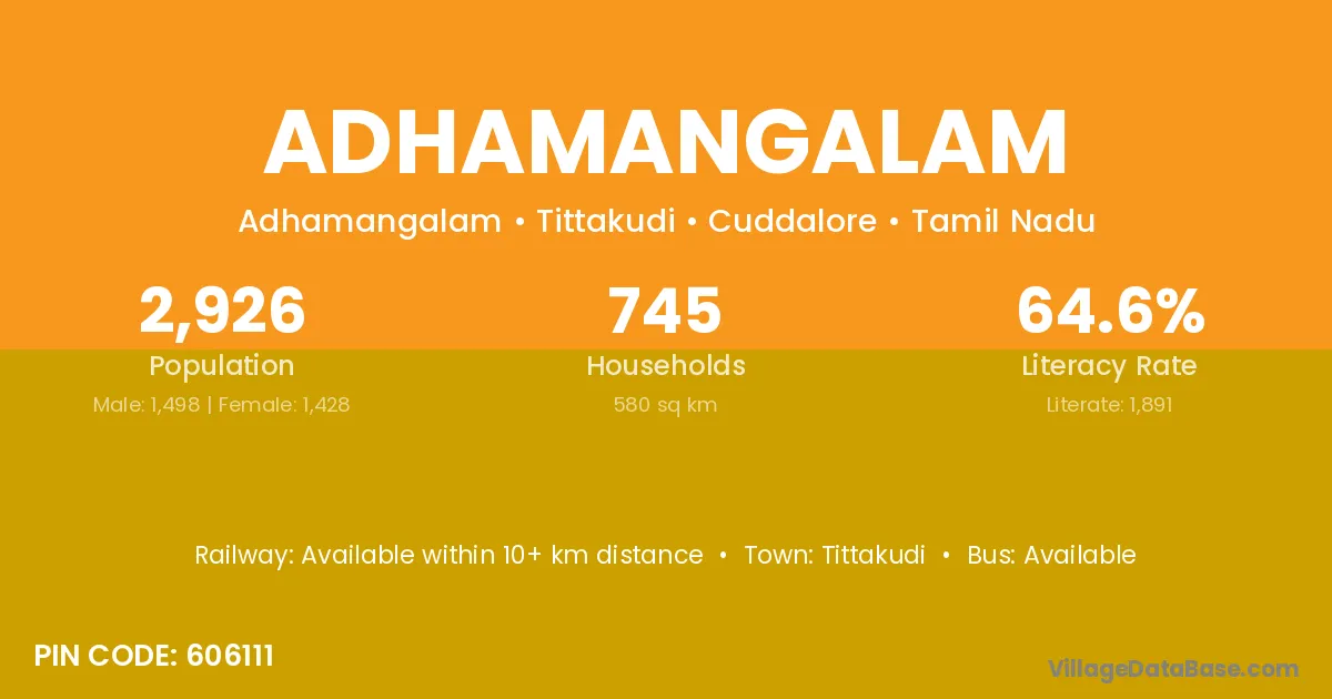 Tittakudi is the nearest town to Adhamangalam village for major economic activities