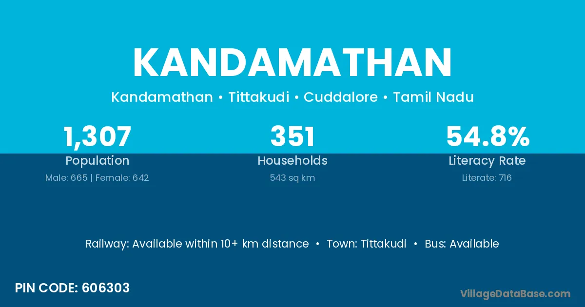 Kandamathan village has a total population of 1,307 people, of which 665 are males and 642 are females.