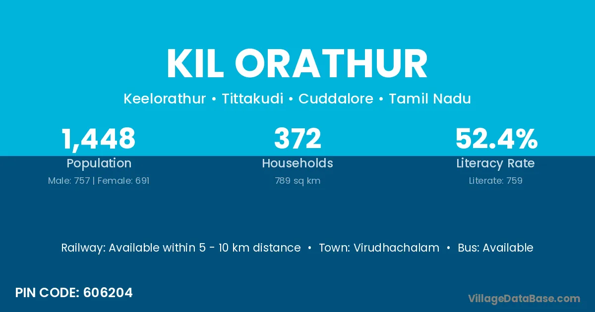 Virudhachalam is the nearest town to Kil Orathur village for major economic activities