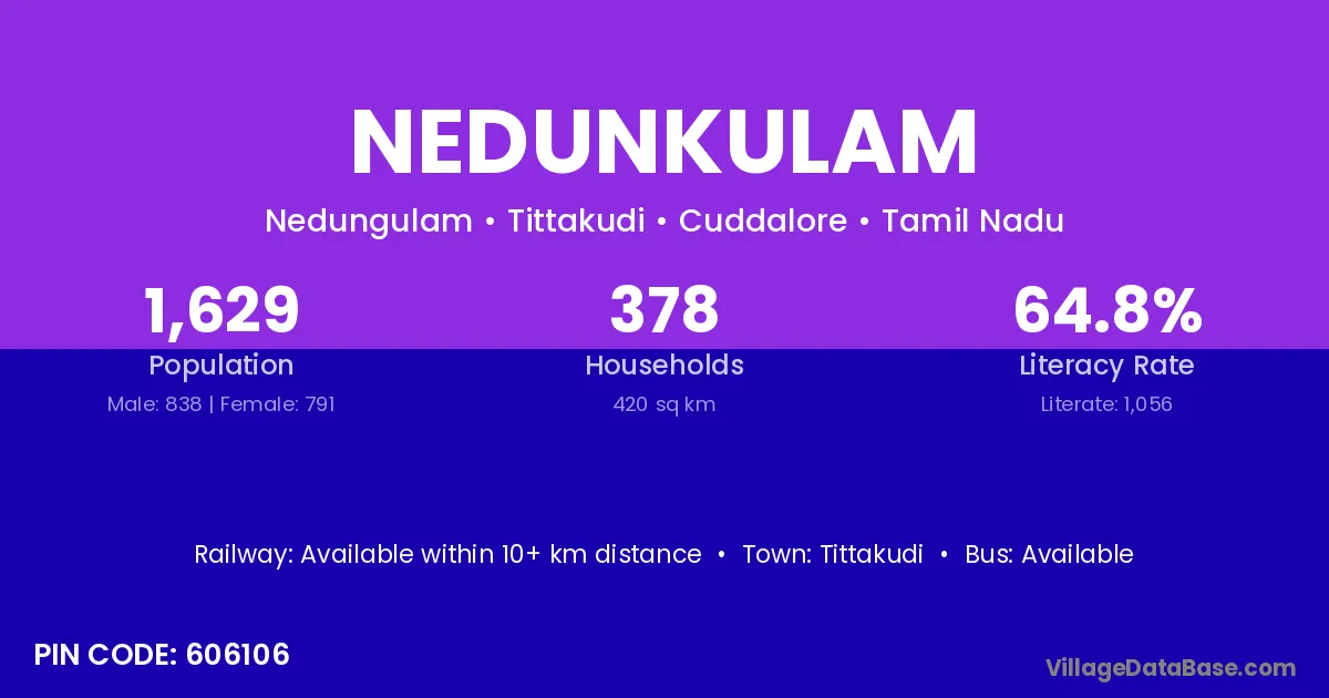 Tittakudi is the nearest town to Nedunkulam village for major economic activities