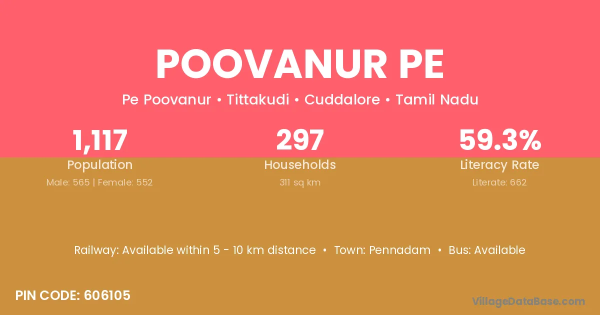 According to Census 2011 information, the village code of Poovanur Pe village is 606105.