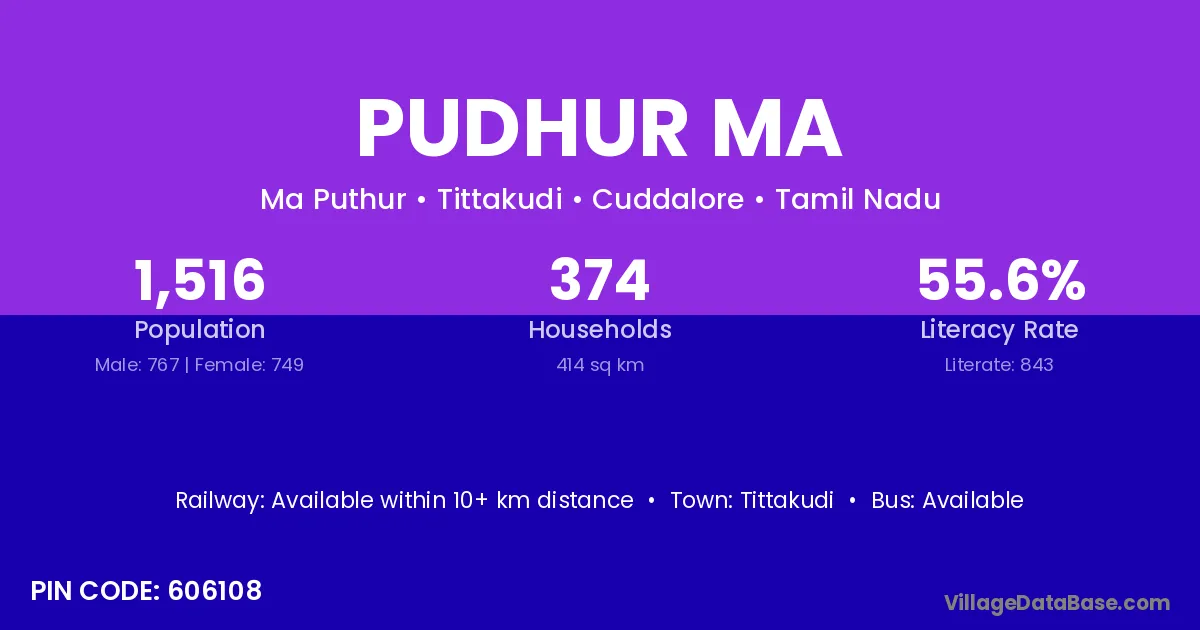 Tittakudi is the nearest town to Pudhur Ma village for major economic activities
