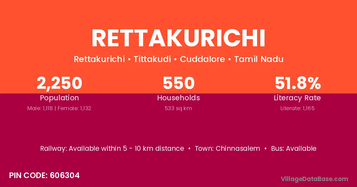 According to Census 2011 information, the village code of Rettakurichi village is 606304.
