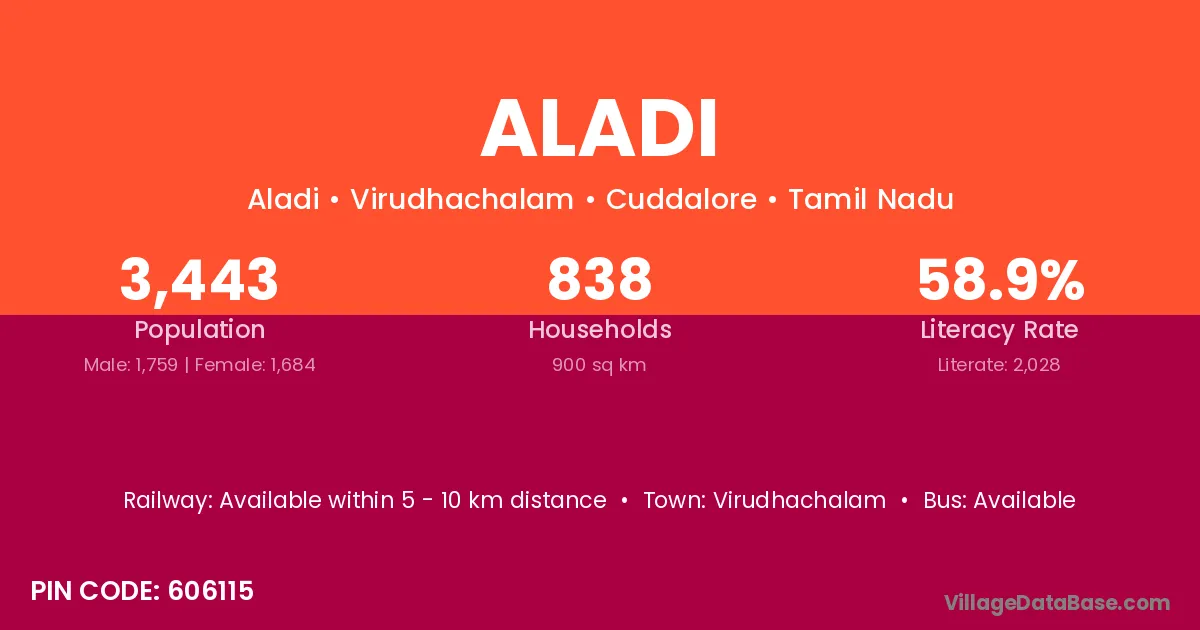 Virudhachalam is the nearest town to Aladi village for major economic activities
