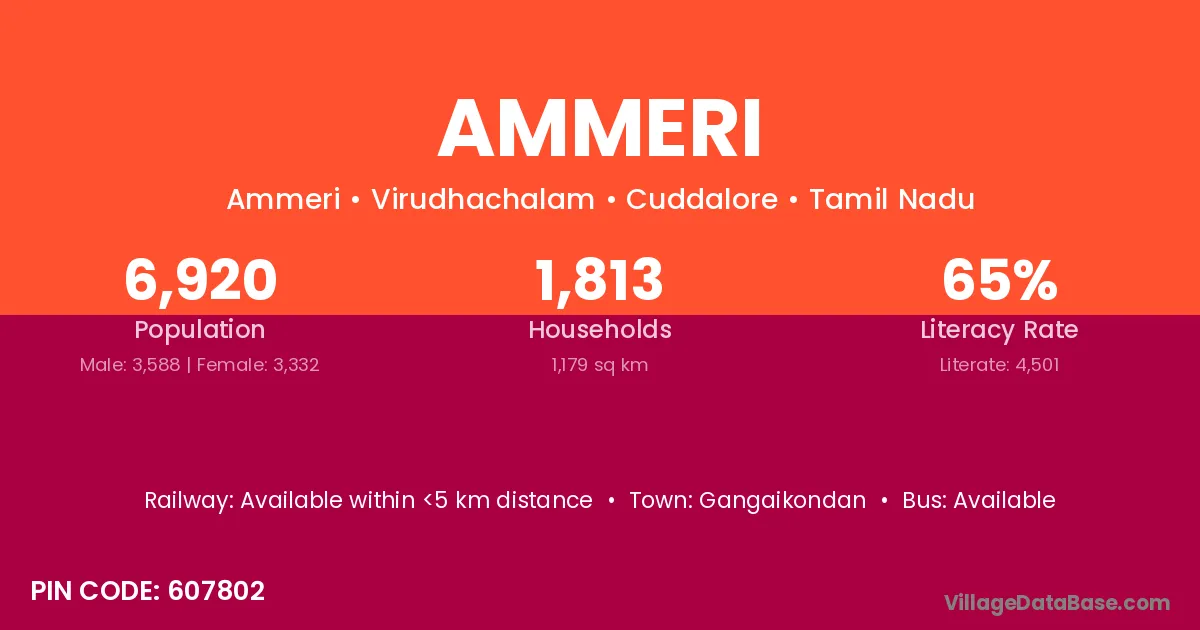 According to Census 2011 information, the village code of Ammeri village is 607802.