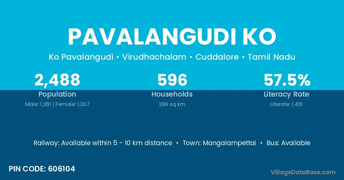 Pavalangudi Ko village has a total population of 2,488 people, of which 1,281 are males and 1,207 are females.