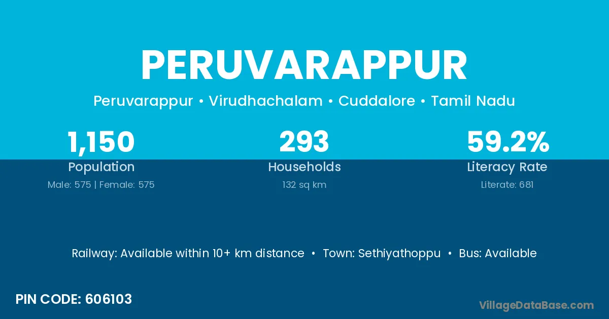 According to Census 2011 information, the village code of Peruvarappur village is 606103.