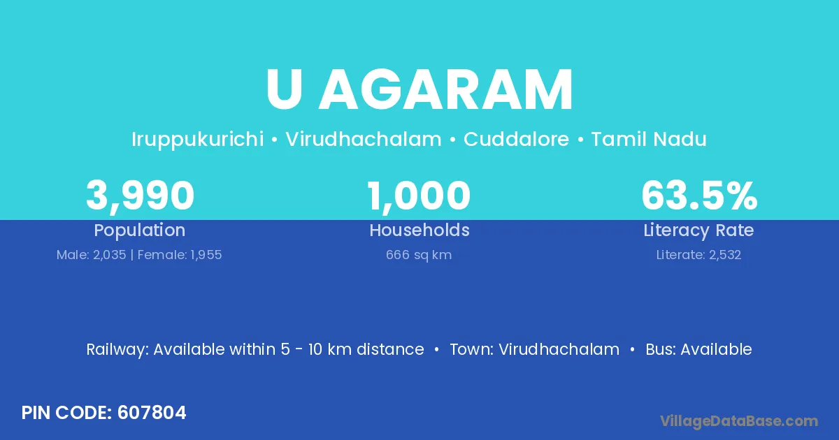 Virudhachalam is the nearest town to U Agaram village for major economic activities