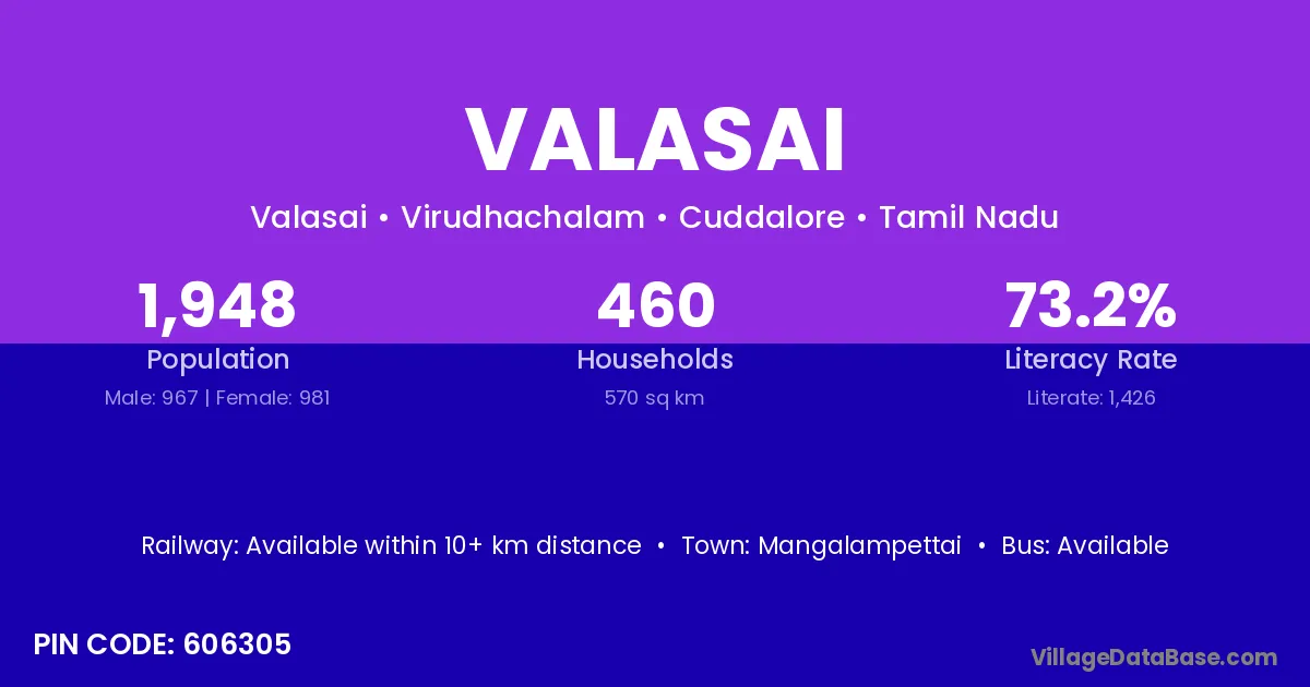 Mangalampettai is the nearest town to Valasai village for major economic activities