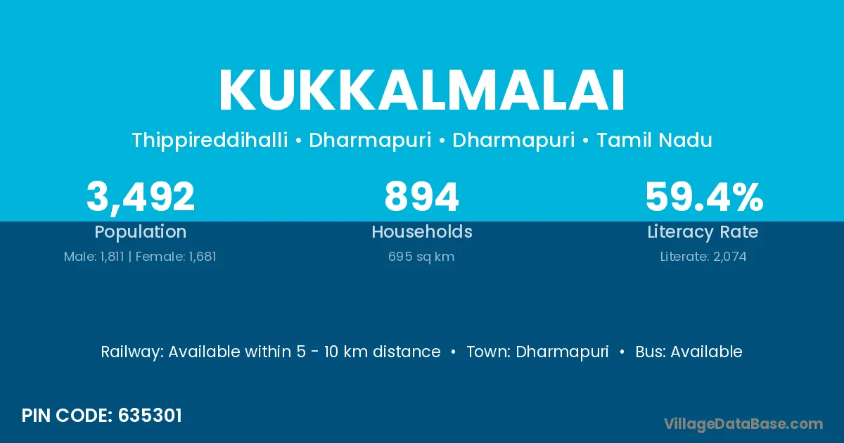 Dharmapuri is the nearest town to Kukkalmalai village for major economic activities