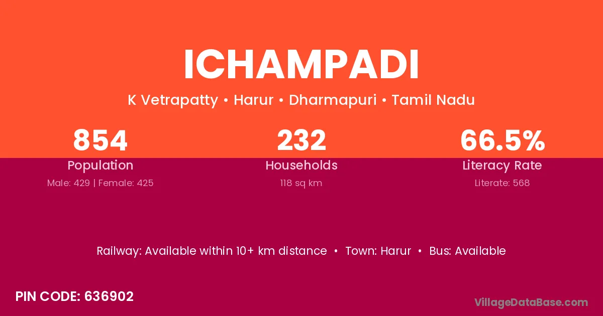 Harur is the nearest town to Ichampadi village for major economic activities