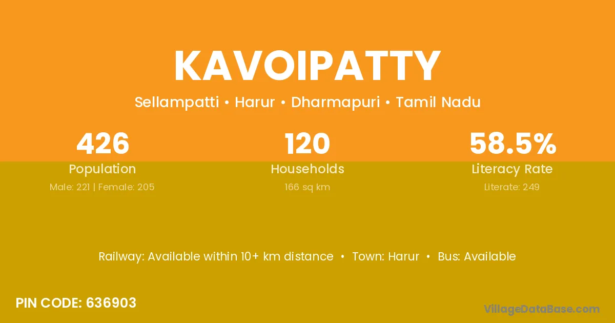 Harur is the nearest town to Kavoipatty village for major economic activities