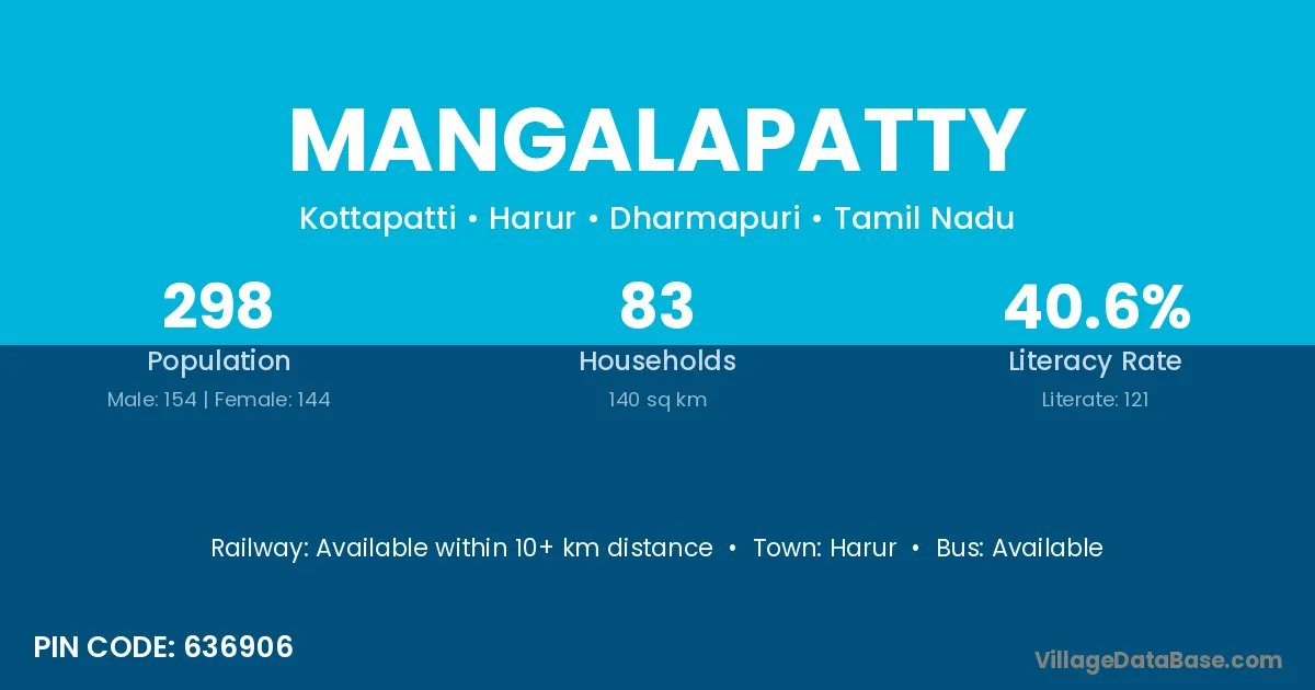 Harur is the nearest town to Mangalapatty village for major economic activities