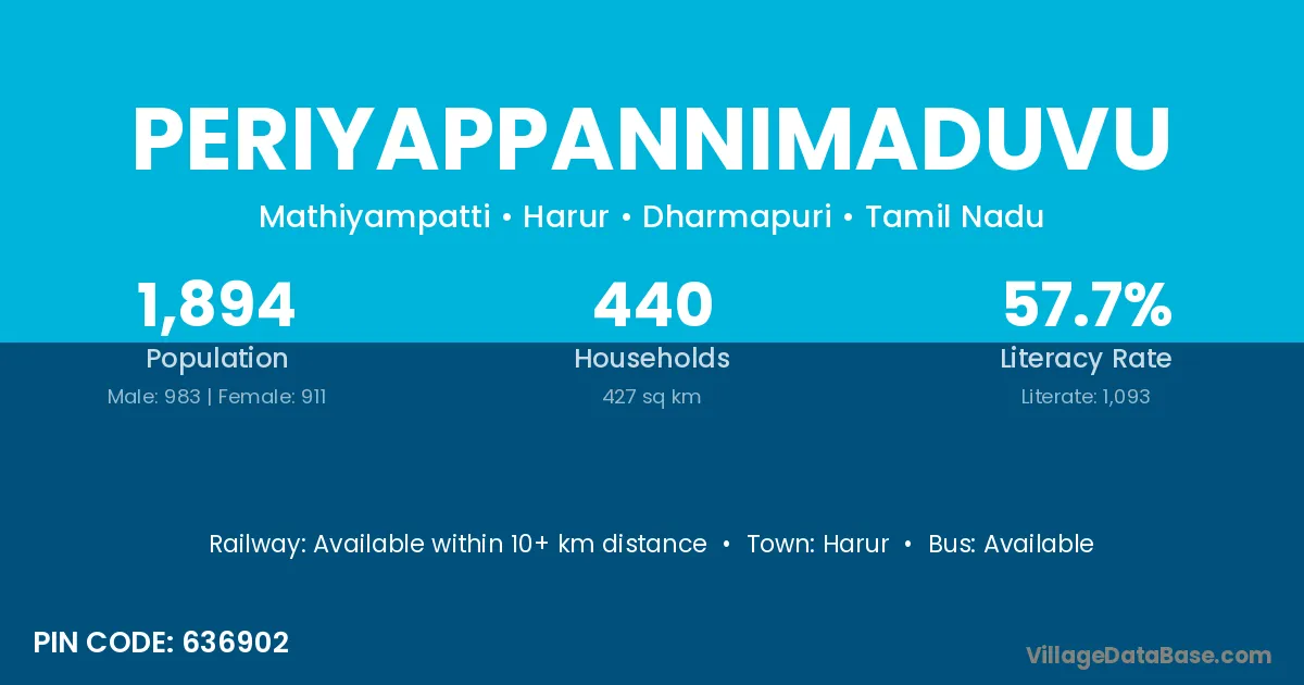 Harur is the nearest town to Periyappannimaduvu village for major economic activities