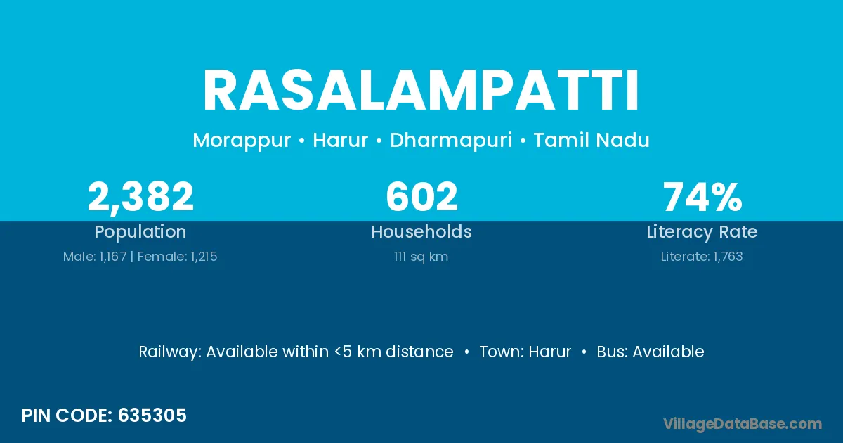 Harur is the nearest town to Rasalampatti village for major economic activities