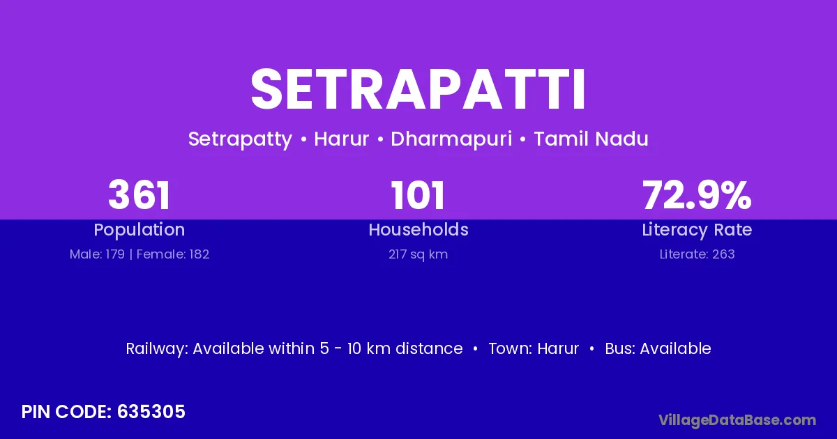 Setrapatti village is located in the Harur Taluka of the Dharmapuri district in Tamil Nadu .