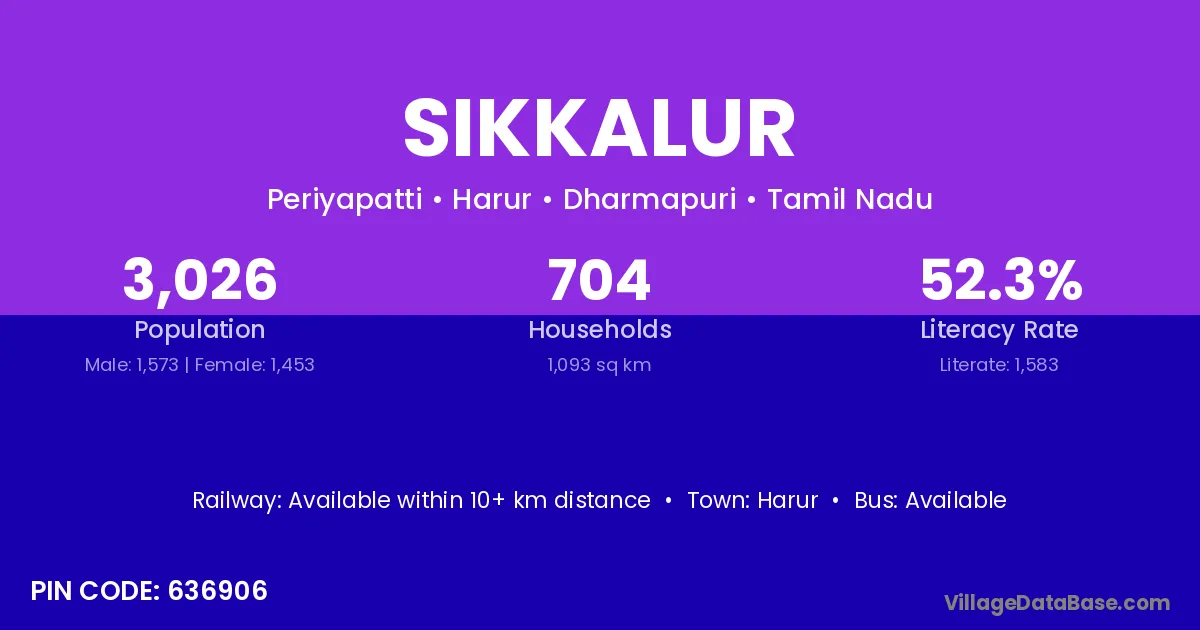 Harur is the nearest town to Sikkalur village for major economic activities