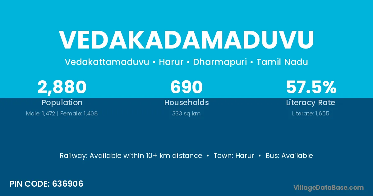 Harur is the nearest town to Vedakadamaduvu village for major economic activities