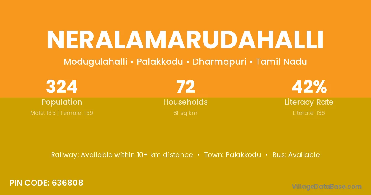 Palakkodu is the nearest town to Neralamarudahalli village for major economic activities