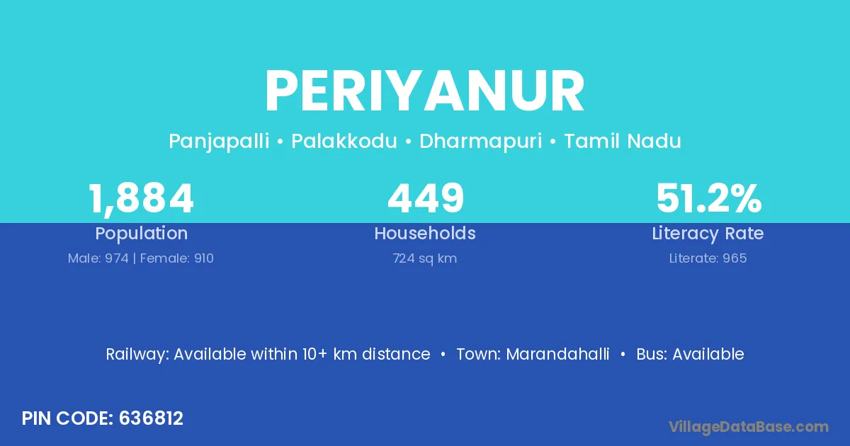 Marandahalli is the nearest town to Periyanur village for major economic activities