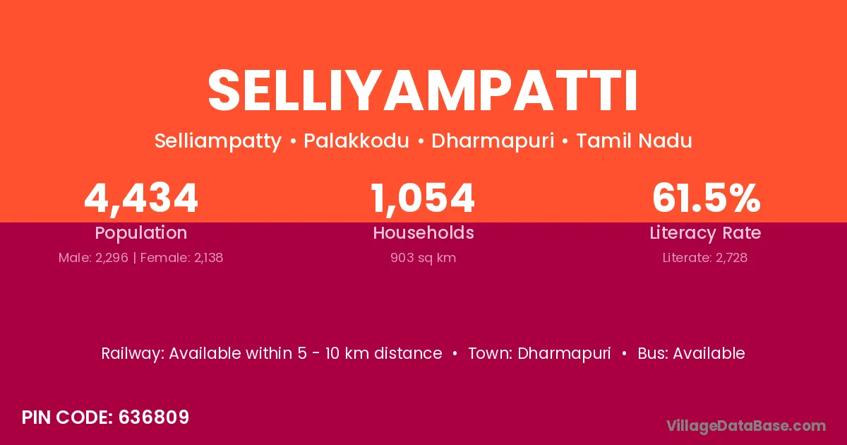 Dharmapuri is the nearest town to Selliyampatti village for major economic activities