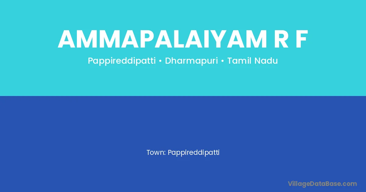 Ammapalaiyam R F village is located in the Pappireddipatti Taluka of the Dharmapuri district in Tamil Nadu .