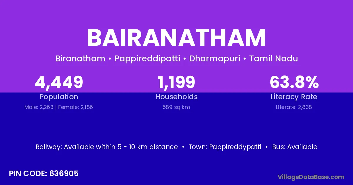 There are approximately 1,199 households in Bairanatham village.