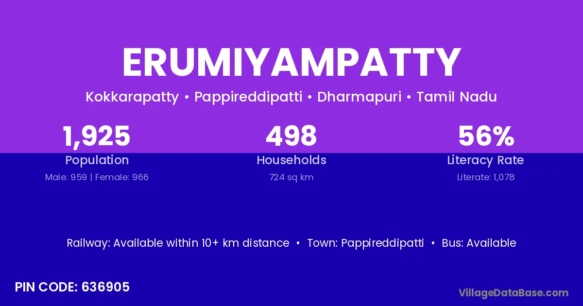 Pappireddipatti is the nearest town to Erumiyampatty village for major economic activities