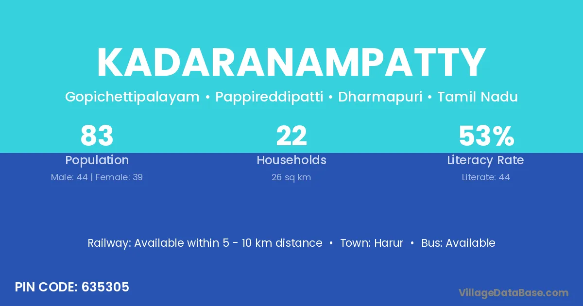 Harur is the nearest town to Kadaranampatty village for major economic activities
