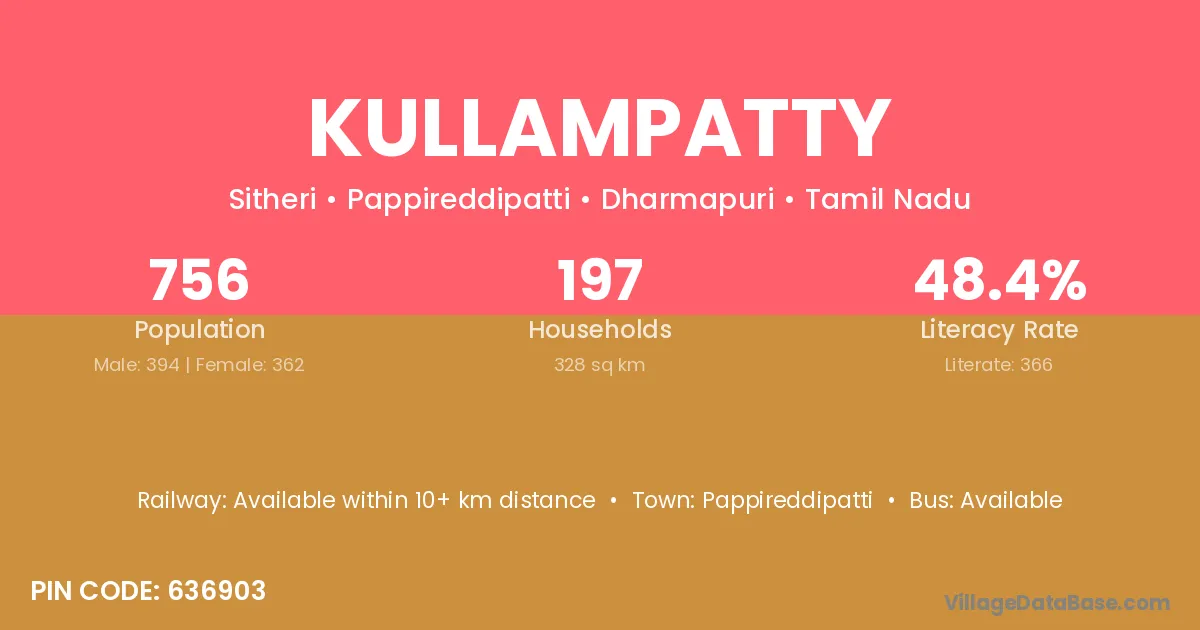 Pappireddipatti is the nearest town to Kullampatty village for major economic activities