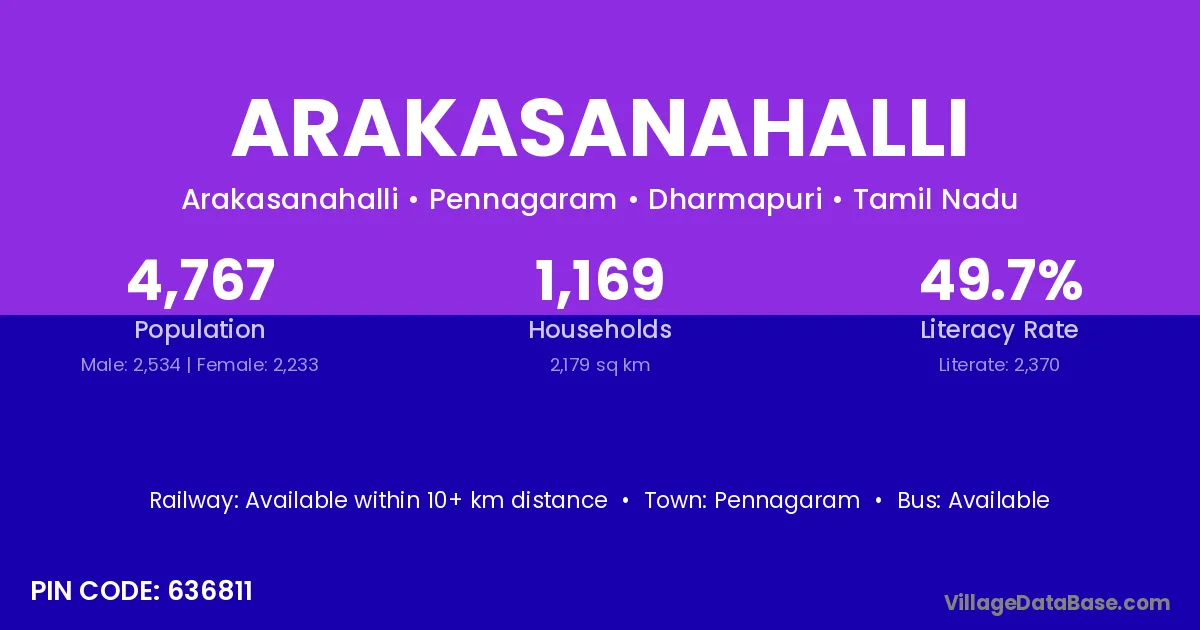 Pennagaram is the nearest town to Arakasanahalli village for major economic activities