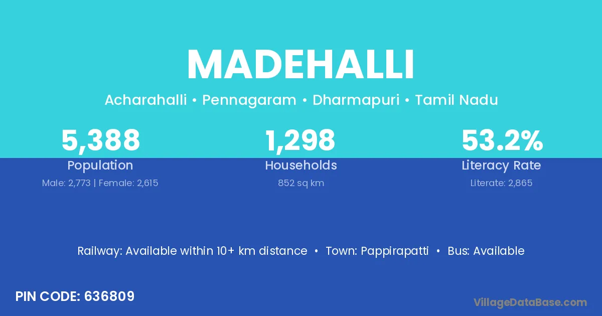 Pappirapatti is the nearest town to Madehalli village for major economic activities