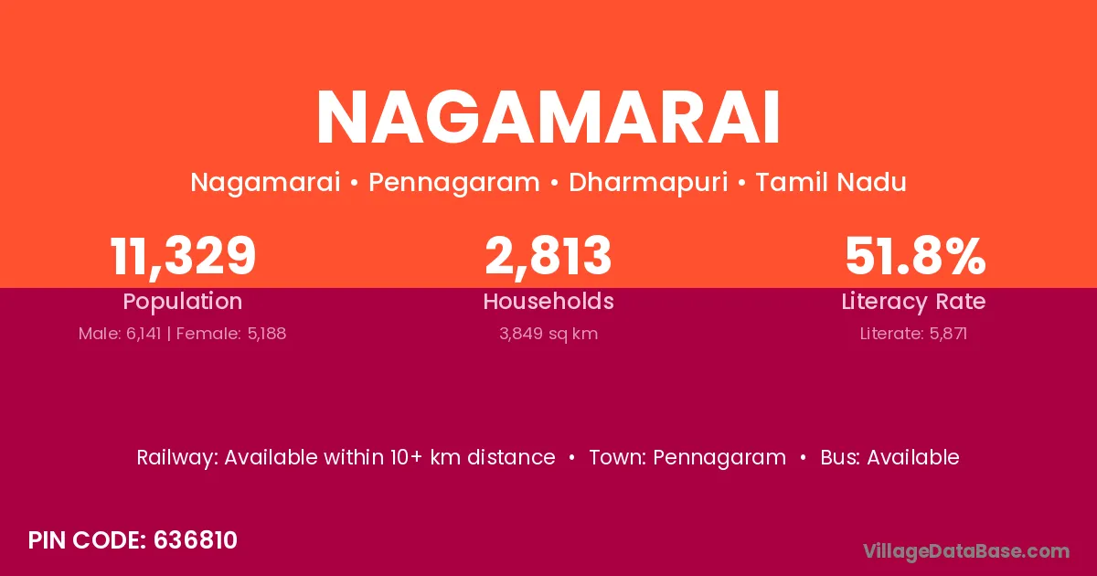 Pennagaram is the nearest town to Nagamarai village for major economic activities
