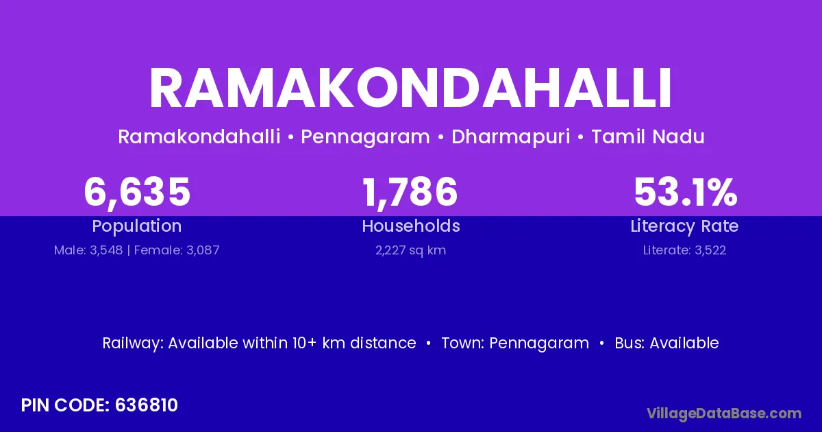 Pennagaram is the nearest town to Ramakondahalli village for major economic activities
